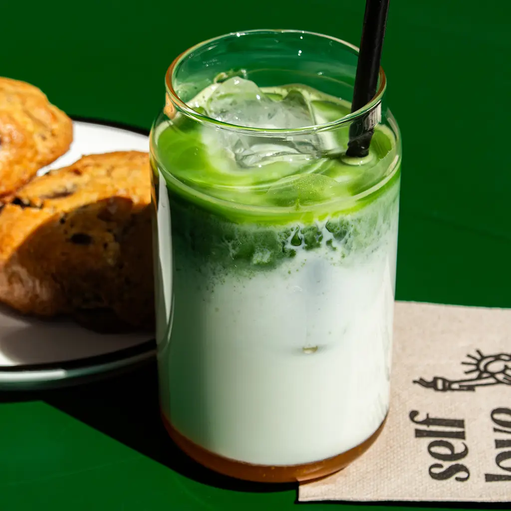 té matcha, leche calentada y vaporizada - 300ml