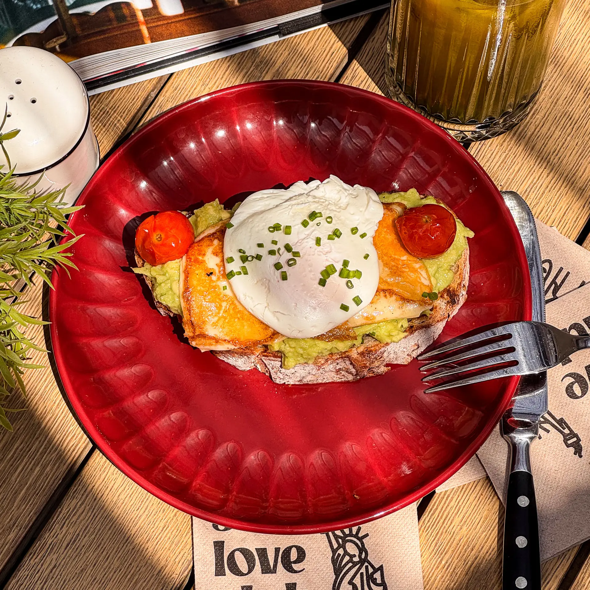 Pan rústico con aguacate, queso raclette fundido, tomates cherry y huevo poché. Un brunch de lujo. NEW🔥